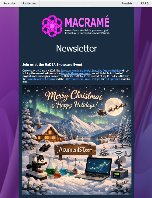 The development of new approach methodologies (NAMs) to replace current in vivo testing for the safety assessment of engineered nanomaterials (ENMs) is hindered by the scarcity of validated experimental data for many ENMs. MACRAMÉ partners contributed to the publication ‘Wisdom of Crowds for Supporting the Safety Evaluation of Nanomaterials’.